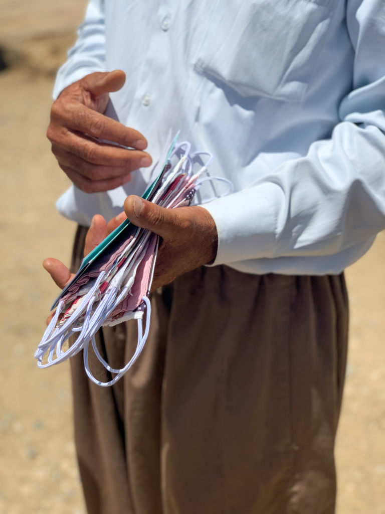 Dystrybucja dla mieszkańców obozu Dawoodia odbyła się w drugiej połowie maja. Ze względu na wzrost liczby potwierdzonych przypadków COVID-19 w Iraku, w tym w regionie Irackiego Kurdystanu, zależało nam na sprawnym przeprowadzeniu dystrybucji, tak aby wszyscy mieszkańcy obozu weszli w posiadanie maseczek ochronnych oraz otrzymali precyzyjne i aktualne informacje na temat pandemii.
