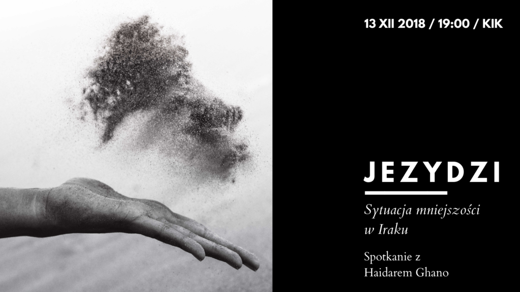 UWAGA: z przyczyn niezależnych od KIK-u nastąpiła zmiana prelegenta: Alhan Zaido Morrad Seikh, która nie otrzymała wizy wjazdowej na teren Polski, zastąpił Haidar Ghano – Jezyd, świadek wydarzeń w rejonie Sindżar.