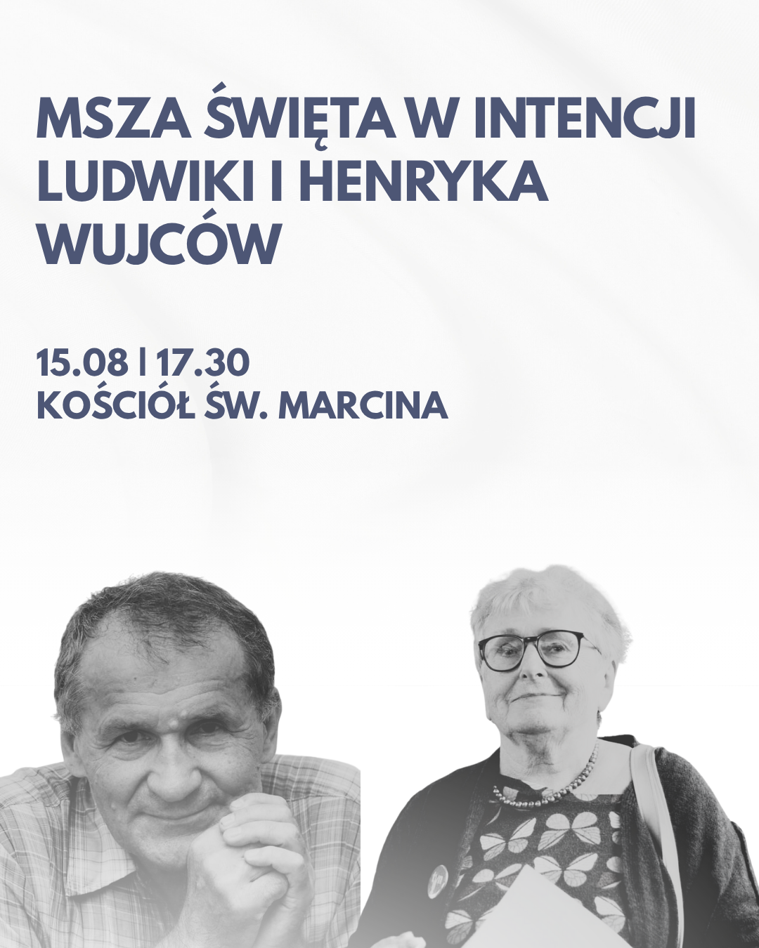 Każdego kto chciałby pomodlić się w intencji małżeństwa Wujców – Ludwiki i Henryka, zapraszamy 15.08 na Mszę świętą o g. 17:30 do kościoła św. Marcina! Ludwika i Henryk Wujcowie niezwykle cenili sobie międzyludzką wspólnotę.