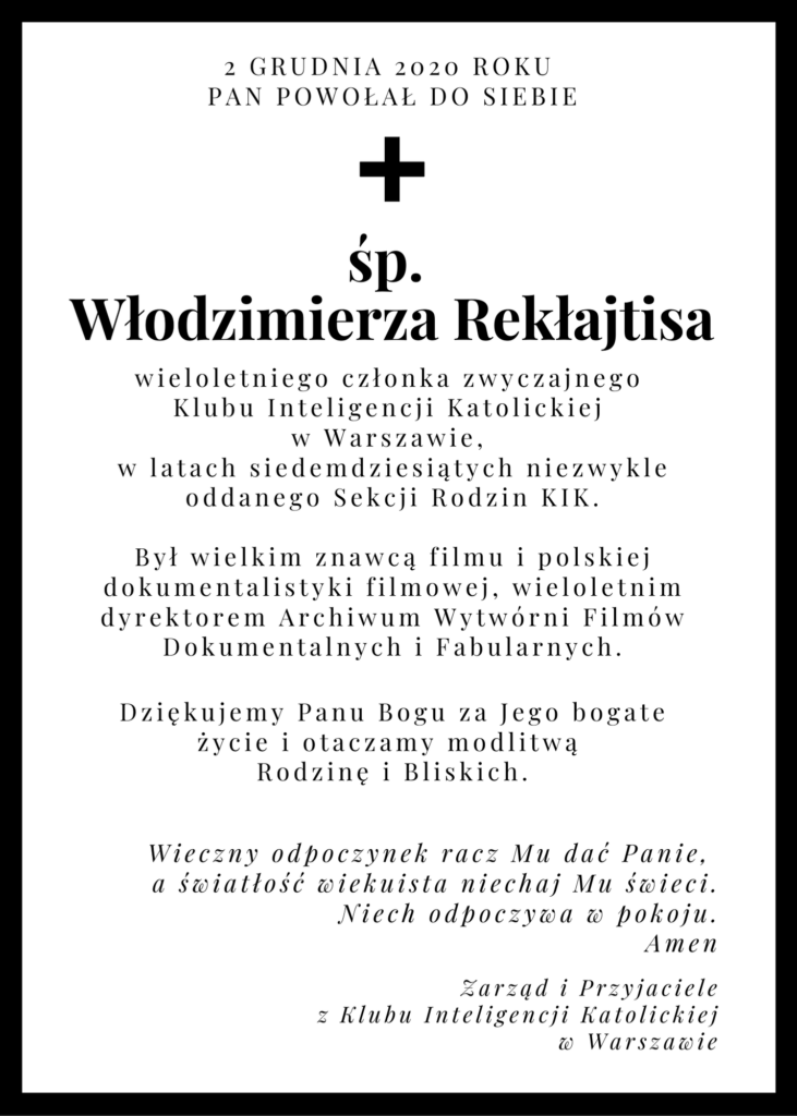 Dnia 2 grudnia 2020 roku do Pana odszedł śp. Włodzimierz Rekłatjis.