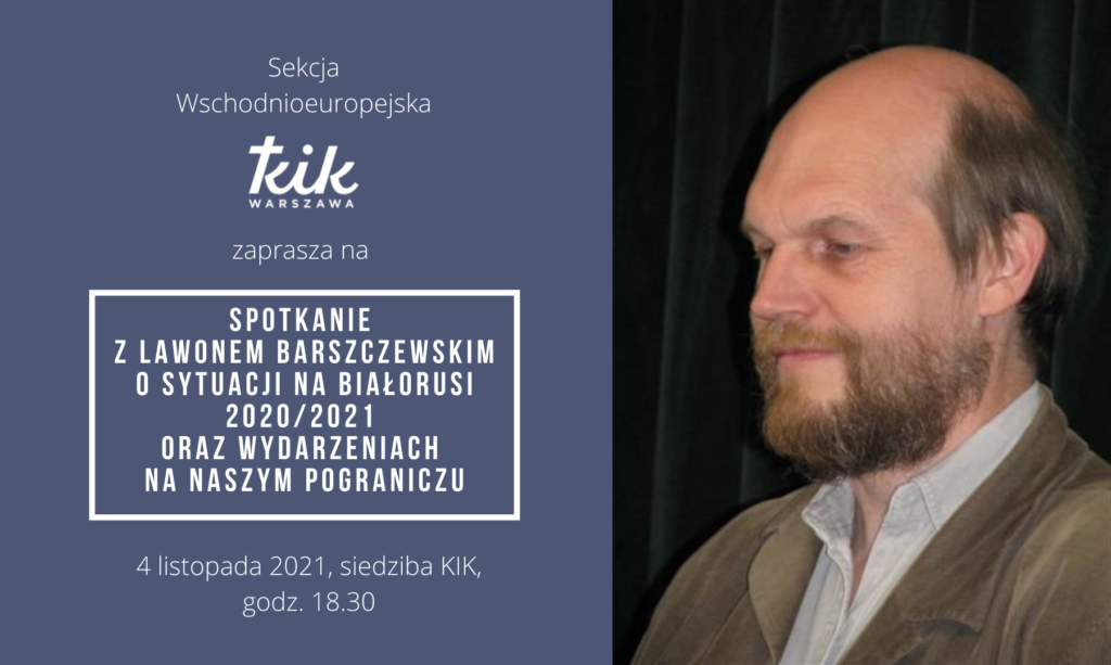 Sekcja Wschodnioeuropejska KIK zaprasza na spotkanie poświęcone sytuacji na Białorusi 2020/2021 oraz wydarzeniom na naszym pograniczu.